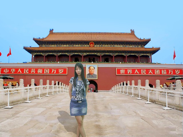 選好背景圖后按“拍照”鍵進入到拍照界面,你還可以根據背景的實際情況調節好人的大小“放大/縮小,人物的位置“方向鍵”。調整好后就按“拍照”鍵進行拍照